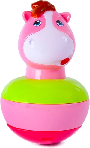 - Zaobljeno postolje – igračka se ne prevrće i vraća se u uspravni položaj.