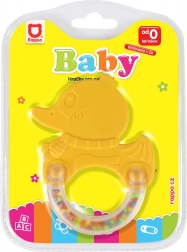 Šareno zvečkalo i grizalo u obliku patke idealno je za najmlađe bebe. Spaja zabavu s praktičnim olakšanjem pri nicanju zubića te istovremeno podupire motoričke i vizualne vještine djeteta. Laka konstrukcija i ugodne teksture izvrsne su za male ručice.