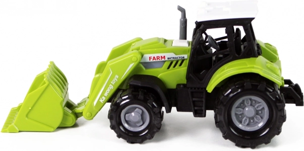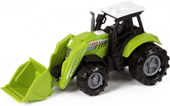 Moderan plastični traktor s prednjom lopatom iz kolekcije Moja mala farma razveselit će svakog malog farmera. Nudi slobodan hod, realistične zvukove i svjetlosne efekte, dugačak je 15 cm i spreman za igru odmah, uključujući baterije AG13/LR44 u pakiranju.