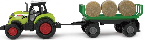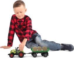 Moderan plastični traktor s prikolicom i balama slame iz kolekcije Moja mala farma nudi realistične zvukove, svjetlosne efekte i slobodni hod za glatku vožnju. Prikolica se može lako odvojiti, a bale se jednostavno skinuti. U pakiranju su uključene baterije AG13/LR44.