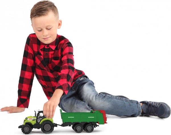 Ovaj traktor s prikolicom izvrstan je za sve ljubitelje poljoprivrednih strojeva. Zahvaljujući realističnim zvukovima i svjetlosnom efektu stvara autentičan doživljaj igre. Traktor se kreće na slobodan hod i izrađen je od izdržljive plastike, idealno za svakodnevnu igru.