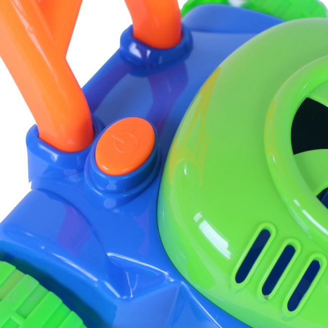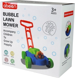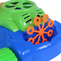 Dječja kosilica za mjehuriće dizajnirana je tako da djeca dožive zabavu i kretanje kad se igraju u vrtu. Dovoljno je naliti otopinu za mjehuriće u posebno mjesto i pokrenuti kosilicu - milijuni malih mjehurića će se razletjeti na sve strane. Za još veće uzbuđenje, kosilica stvara zvukove i svira glazbu ako ju napajate s tri AA baterije (nisu uključene), ili se može koristiti bez baterija s mehaničkim zvukom.