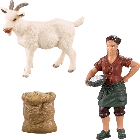 Koza, jare i farmerica čine skladnu cjelinu, idealnu za stvaranje scena s farme i učenje o uzgoju životinja.
