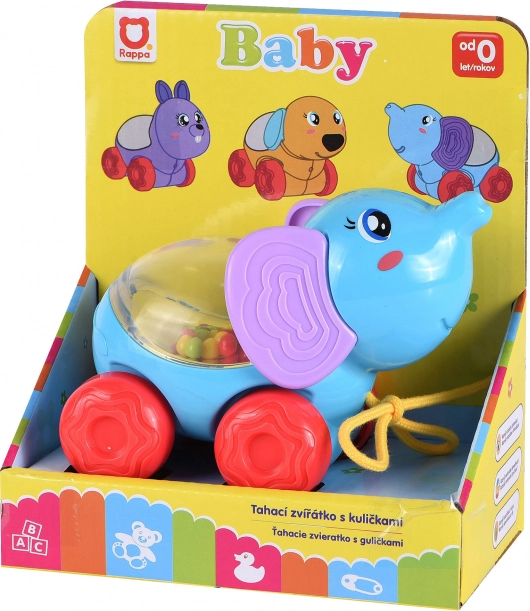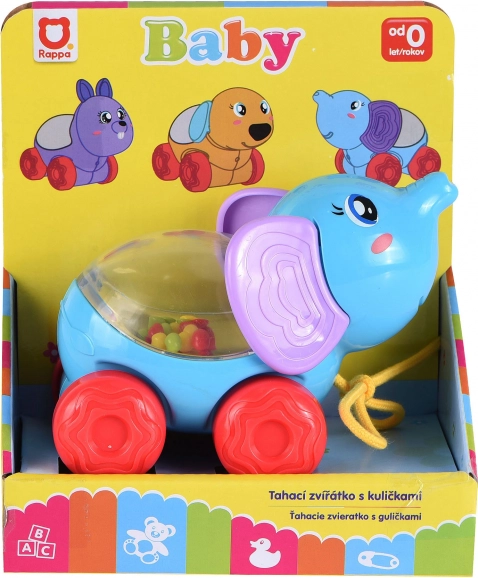 Povlačni slon s kuglicama je razigrana životinjica na kotačima koja zabavlja djecu pri prvim koracima i zajedničkoj igri. Pri povlačenju ili gurkanju unutar prozirnog dijela razskakuju se šarene kuglice, što djecu prirodno motivira na kretanje i istraživanje.