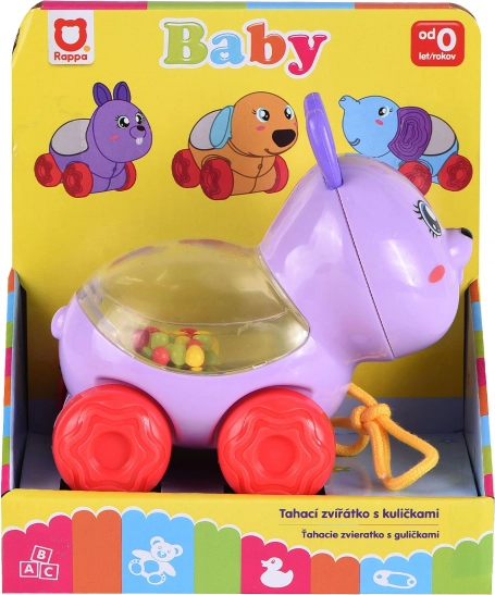 Preslatki povlačni zeko na kotačićima s obojenim kuglicama koje pri kretanju veselo poskakuju. Idealna igračka za prve korake i razvoj motorike – zaintrigira, zabavi i potiče aktivnu igru.