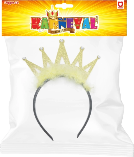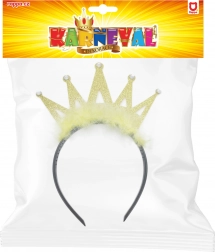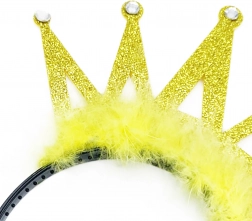Elegantna dječja traka za kosu sa zlatnom krunom, ukrašena perjem i sjajnim kamenčićima, savršen je dodatak za karnevalski kostim. Predivan dizajn privlači pažnju i udobno nošenje je zajamčeno.