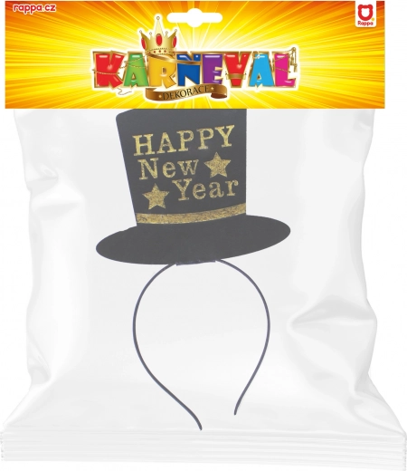 Crna traka za kosu s malim šeširom, upotpunjena zlatnim natpisom HAPPY New Year, savršen je dodatak za proslavu ili zabavu dočeka Nove godine!
