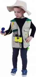 Ovaj karnevalski kostim pretvara svako dijete u hrabrog istraživača. Lagani prsluk s džepovima i šešir bez vezice lako se oblače, dok bogat pribor potiče maštu i razvija znatiželju za igru kod kuće i na otvorenom.