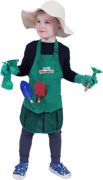 - Kompletan set: pregača, šešir (bez vezice), rukavice, raspršivač, 6 kom vrtlarskog alata