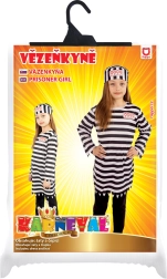 Razveselite svaki karneval ovim dojmljivim kostimom zatvorenice u tipičnoj bijelo‑crnoj izvedbi. Set sadrži dugu majicu s karakterističnim nazubljenim porubom i kapu s brojem 9999, koji daju kostimu autentičan izgled. Prikladno za djevojčice visoke 105–116 cm (otprilike 4–6 godina).