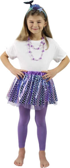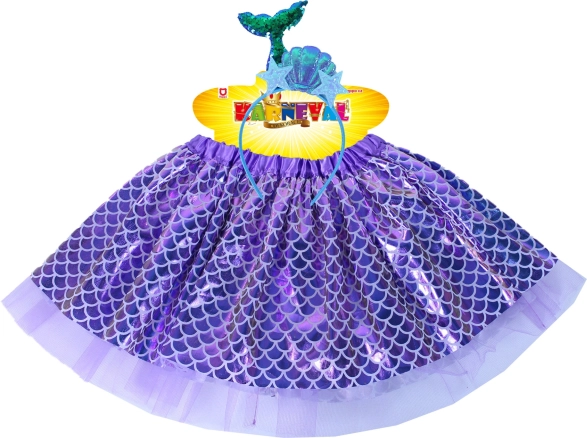 Ovaj kostim nadopunjuje stilska traka za kosu koja sadrži riblji motiv, a idealan je za plesne nastupe, karnevale ili svakodnevnu igru morskih sirena. Duljina suknjice je oko 28 cm, što jamči udobnost i jednostavno rukovanje.