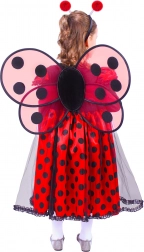 Kostim savršeno oponaša bubamaru zahvaljujući crvenoj haljini s crnim točkama, krilima i traci s ticalima.