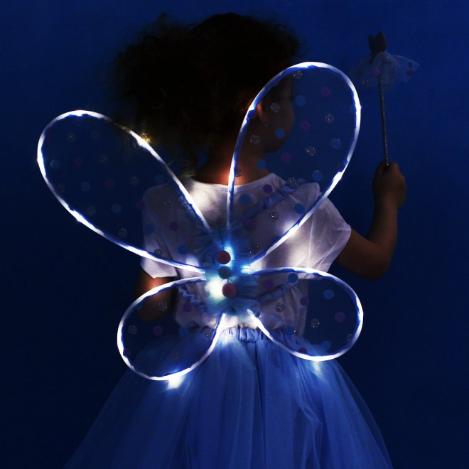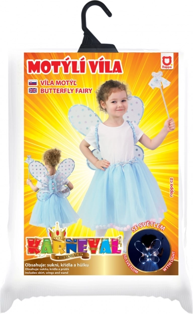 Otkrijte čarobni svijet vila s prekrasnim kostimom Modrenka! Ovaj kostim uključuje plavu TUTU suknju od tila sa satenskom podsuknjom i svjetleća krila s efektnim svjetlima.