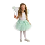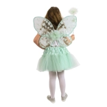 Pretvorite svaku djevojčicu u šarmantnu vilu s ovim prekrasnim kostimom. Zelena til suknjica sa satenskom podstavom ukrašena je sitnim cvjetićima i ima srebrnu gumu u struku za udobno nošenje. Krila i štapić savršeno su usklađeni s cjelokupnim motivom.