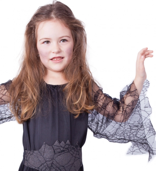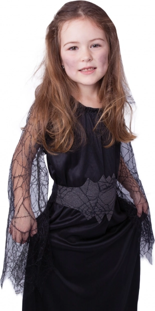 Ovaj dječji kostim crne vještice pretvorit će svaku djevojčicu u pravu čarobnicu. Haljinu u univerzalnoj crnoj boji krase lagano prozirni rukavi s motivom paučine koji daju outfitu tajanstvenu notu. Veličina S idealna je za djecu od 4–6 godina i visine 105–116 cm.