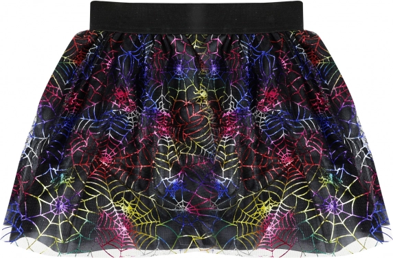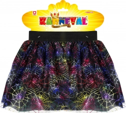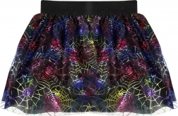 Lagana tutu suknja s raznobojnim printom paukovih mreža razveselit će svaku malu vješticu. Zahvaljujući elastičnom pojasu lako se oblači, ima duljinu 28 cm i idealna je za Noć vještica, karneval i tematske proslave. Prikladna za djevojčice u dobi 3–7 godina.
