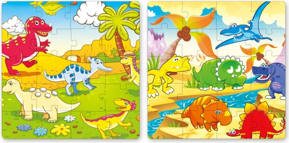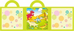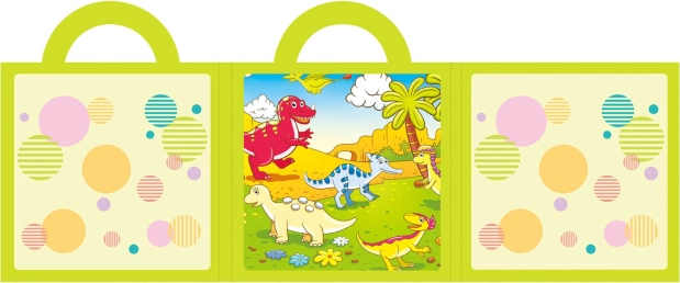 Zahvaljujući većim dijelovima slagalica se lako drži i slaže i mlađoj djeci. Bogate ilustracije sa slatkim dinosaurusima razvijaju maštu, koncentraciju i vizualnu percepciju. Praktičan knjiški format idealan je za auto, u gostima i u čekaonicama.
