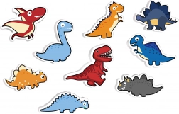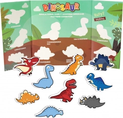 - Podloga, 9 izrezaka dinosaura, 9 naljepnica, odgovarajući broj magneta