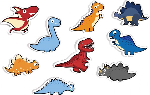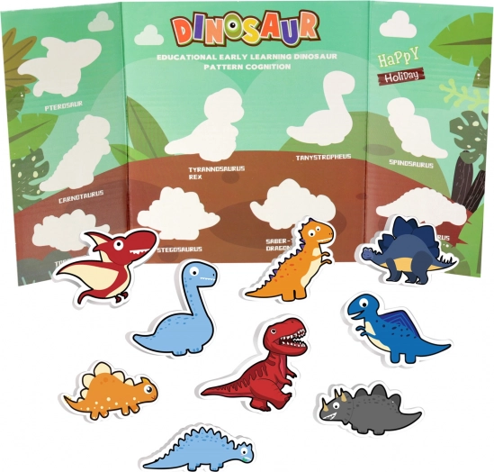 Podloga, 9 izrezaka dinosaura, 9 naljepnica, odgovarajući broj magneta