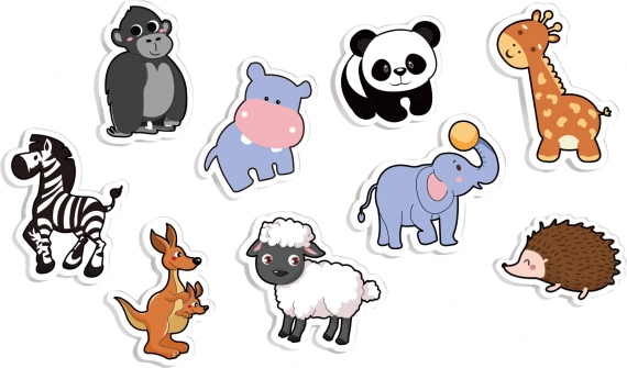 • Kompletan sadržaj: podloga, 9 pjenastih izrezaka životinja, 9 naljepnica i odgovarajući broj magneta.