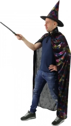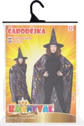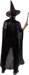 Ovaj detaljno izrađen kostim idealan je za svakoga tko želi uživati u čarobnim večerima u dramatičnom stilu. Sadrži prekrasan plašt s raznobojnim uzorcima paukove mreže i usklađeni šešir koji cijelom outfitu daje pravu čarobnjačku atmosferu.