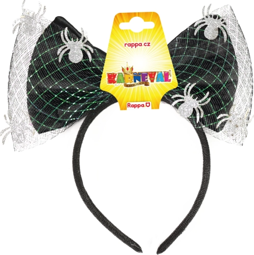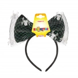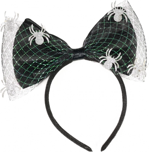 Sjajna traka za kosu s velikom mašnom i paukovima, idealna kao dodatak za party ili karneval.