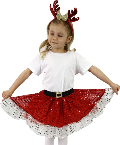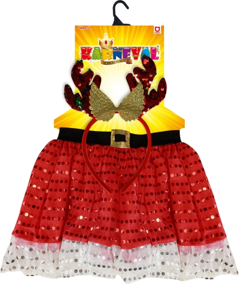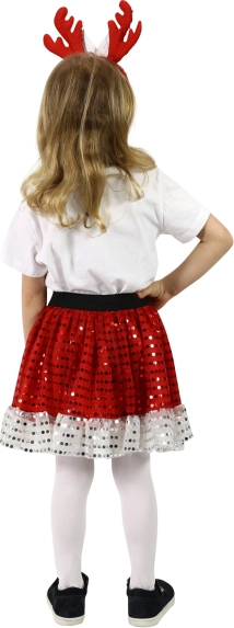 Učinite Božić nezaboravnim s našim djevojačkim božićnim kostimom TUTU, koji je idealan za male princeze. Suknja u crvenoj boji s bijelim volanom daje sveukupnom dojmu svečan ton. Zahvaljujući elastičnom crnom pojasu prilagođava se svakoj figuri. Kostim također uključuje senzacionalnu traku za kosu s rogovima sobova, koja savršeno upotpunjuje cjelokupan dojam.
