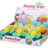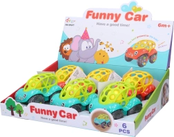 Auto zvečkica veličine 11,5 cm idealna je prva igračka za bebe od 6 mjeseci. Zahvaljujući kuglici unutar igračke stvara ugodan zvuk koji zabavlja dijete, dok šareni dizajn potiče vizualnu percepciju i koordinaciju oko–ruka.