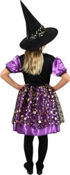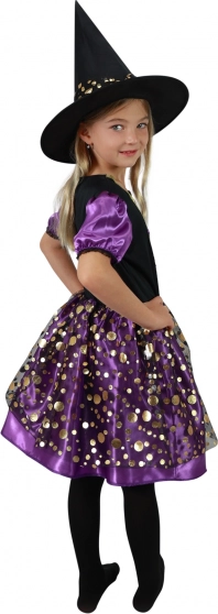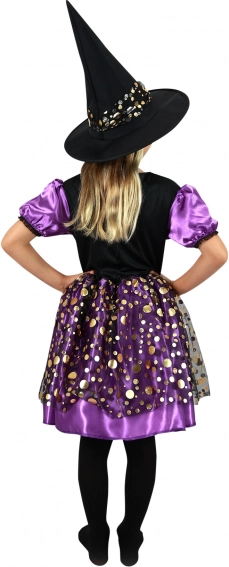 Priuštite svojoj maloj vještici nezaboravno iskustvo s kostimom koji osvaja na prvi pogled. Ljubičasto‑crna haljina sa zlatnim tiskom i napuhanim rukavima prekrasno će se isticati na svakoj zabavi. U setu je i stilski vještičji šešir koji savršeno upotpunjuje cijeli outfit.