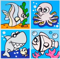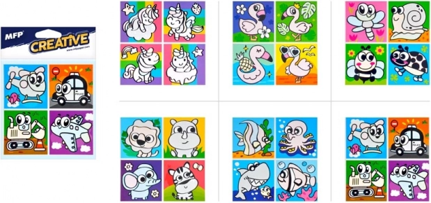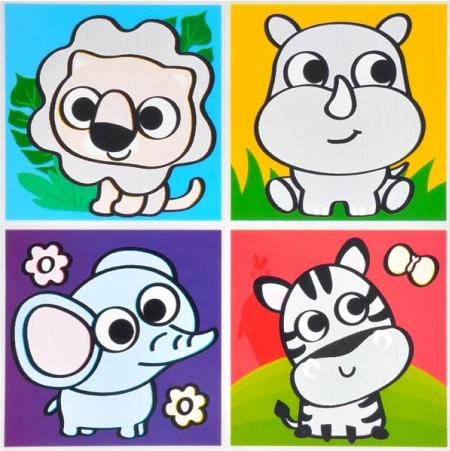 U pakiranju ćete pronaći mješavinu motiva, uključujući životinje i prijevozna sredstva. Svaki arak sadrži četiri sličice, savršene za dječju kupaonicu.