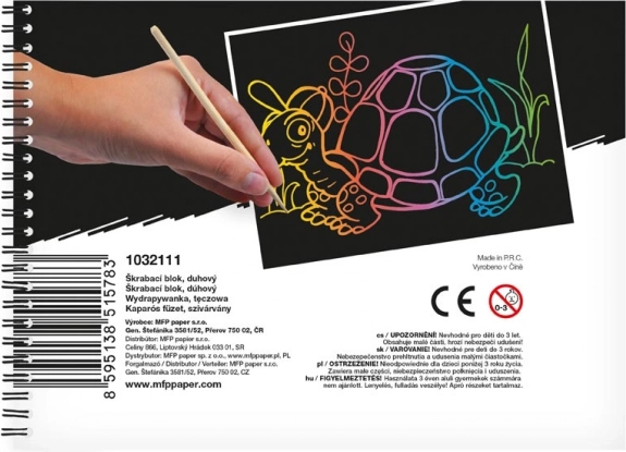 Blok za grebanje slika donosi vam kreativne mogućnosti i zabavu. Uz priloženo pero za grebanje stvorite jedinstvene šarene motive na svakom od deset listova.