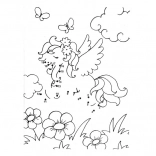 Slika s letećom vilom iznad cvijeća razvija računanje korak po korak i motivira djecu na bojanje detalja.