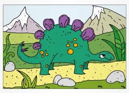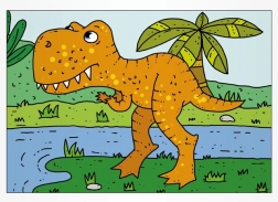 Sveska u formatu A5 nudi 16 stranica i 8 predložaka za bojanje (npr. stegosaur, tiranosaurus rex, brontosaur, pterodaktil itd.). Ilustracije Barbore Křístkove jasne su i razigrane, pa su prikladne i za zajednička poslijepodneva i za samostalnu zabavu.