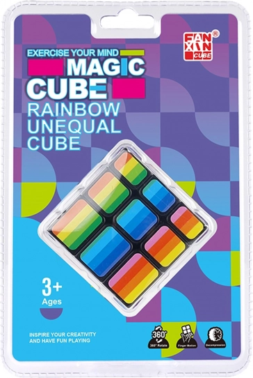Ova dugina magijska kocka je dizajnirana za sate zabave i razmišljanja. Zadatak je preurediti pojedine dijelove tako da svaka strana cijelog tijela bude u istom šarenom uzorku:
