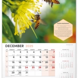 Zidni kalendar idealan za početnike i iskusne pčelare s mjesečnim fotografijama, pranostikama i aktivnostima. Sadrži slovenski kalendarij s imenima, praznicima i drugim važnim podacima.