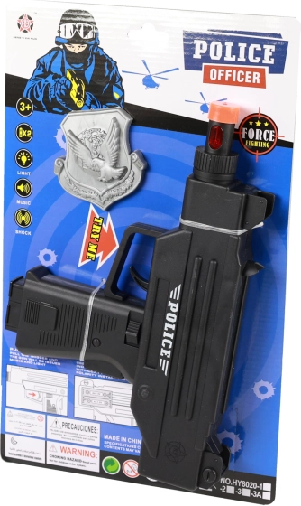 Realistična policijska strojnica za male akcijske junake. Pritiskom na okidač proizvodi realistične zvukove i svijetli svjetlosnim efektima, pa je zabava i igra uloga još intenzivnija. Idealno za djecu od 3 godine.