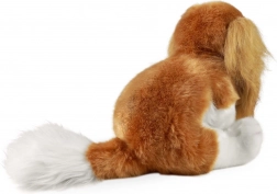 Detaljna izrada pasmine kavalir king Charles španijel s dugim uškama, sjajnim očima i pahuljastim repom. Nježni pliš poziva na stalno maženje.