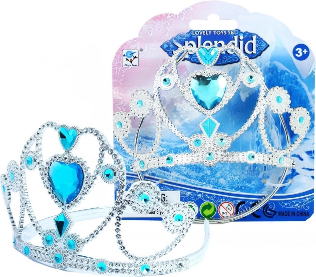 Čarobna krunica za male snježne princeze s plavim detaljima i upadljivim središnjim kamenom. Laka, udobna i idealna za maškare, zabave i kostimiranje. Preporučeno za djecu od 3 godine.