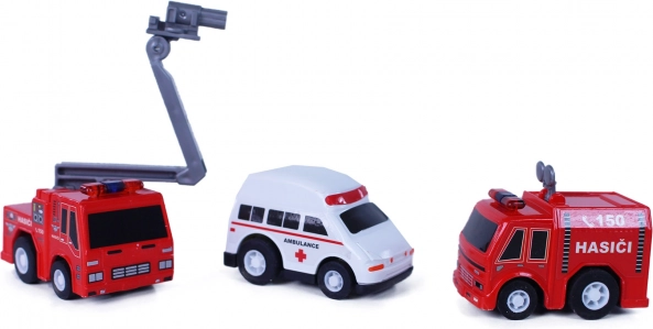 - 3 mini spasilačka autića sa povratnim pogonom za dinamičnu vožnju.