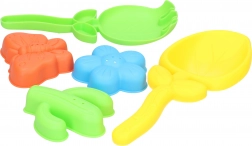 Ovaj svestrani set za pijesak donosi novu dimenziju dječjoj igri na pješčaniku. Opremljen je kantom dimenzija 15x15x15 cm i nastavkom za pretvaranje u kanticu. U paketu se također nalaze lopatica, grablje i 3 kalupa, koji osiguravaju puno zabave te potiču dječju kreativnost.