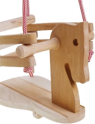 Djeca vole ljuljačke, a ova u obliku konja zasigurno će postati njihova omiljena. Obješena na užadima s prihvatima, pogodna za vješanje primjerice na kuke, pruža sate zabave.