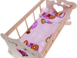 Kolijevka je u potpunosti od prirodnog drva, nelakirana, s tekstilnom posteljinom za lutku ili medvjedića.