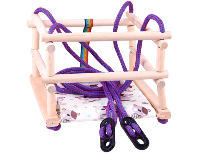 Šarena drvena ljuljačka za vješanje.Izrađena od bukovog drva, lakirana ekološkim vodenim lakom.