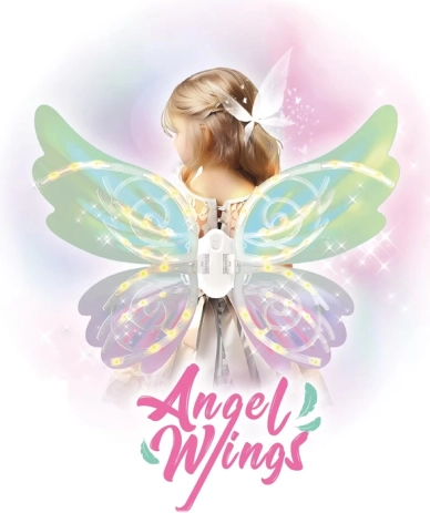 Svjetlucavo čarobno krilo osmišljeno je za djecu koja žele doživjeti čarobne avanture. Pritiskom na gumb između krila aktiviraju se dva zabavna načina. U prvom načinu krila mašu, svijetle i svira bajkovita glazba, omogućujući djeci da se osjećaju kao male vile iz čarobnog kraljevstva. U drugom načinu krila svijetle i mašu bez zvučne pratnje, omogućujući mirniju igru.