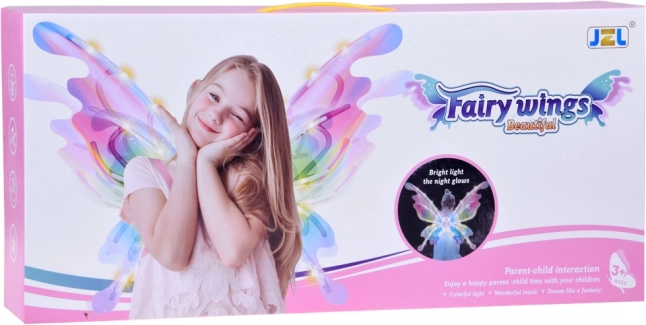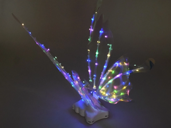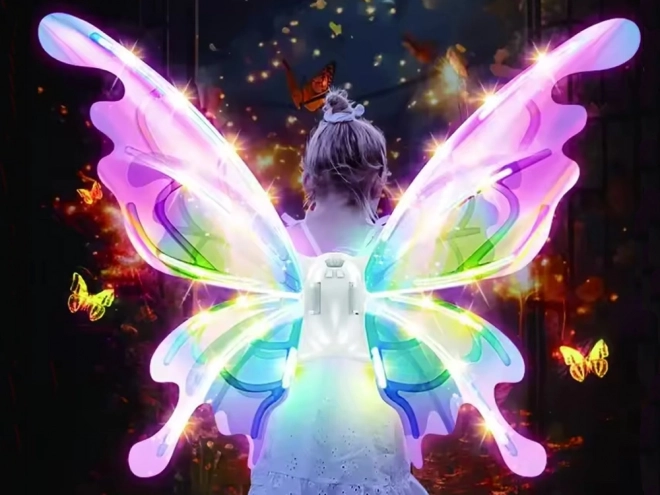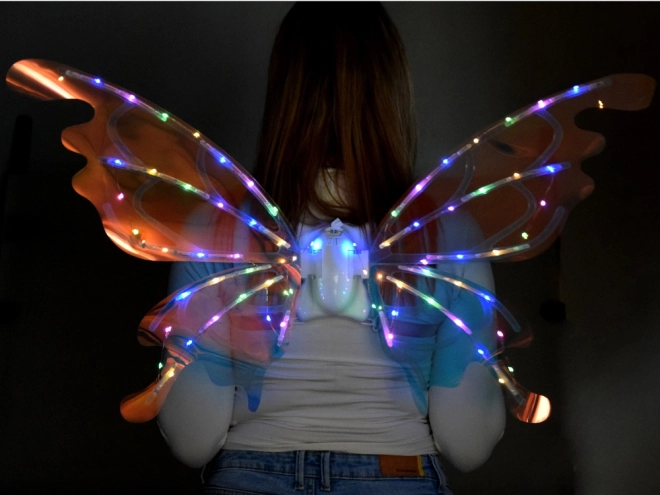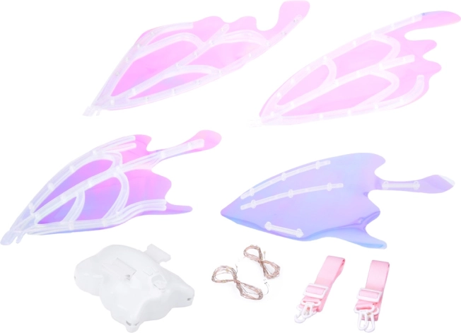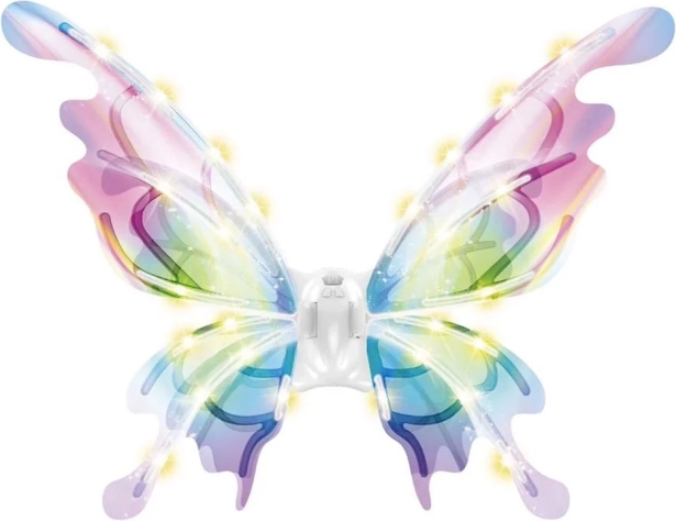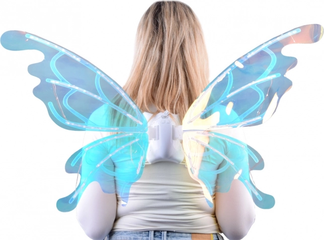 Ova čarobna dječja krila oponašaju velika leptirova krila koja se, ovisno o kutu svjetla, prekrasno sjaje i mijenjaju boje. Integrirano LED osvjetljenje i mehaničko pomicanje krila stvaraju efektnu predstavu koja će oduševiti svaku malu vilu, elfa ili leptirića.