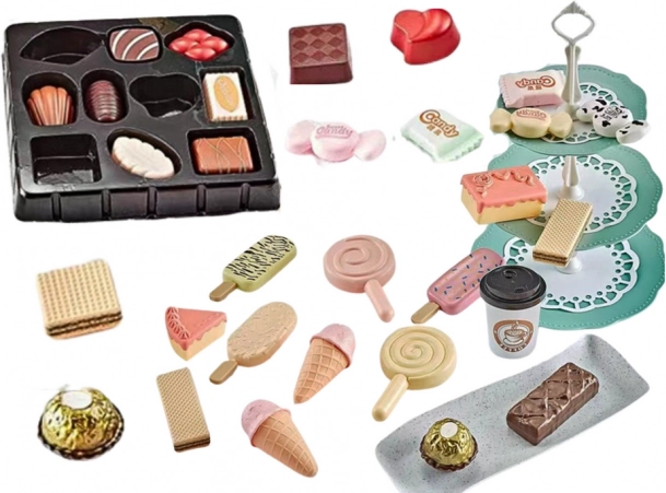 Ovaj bogat set za male ljubitelje slatkoga nudi sve potrebno za otvaranje vlastite mini slastičarnice. Djeca mogu posluživati deserte, aranžirati ih na elegantnoj troetažnoj etažerici i „skuhati“ kavu za goste. Realističan izgled dijelova i ugodna paleta boja podržavaju kreativnost, igru uloga i finu motoriku.