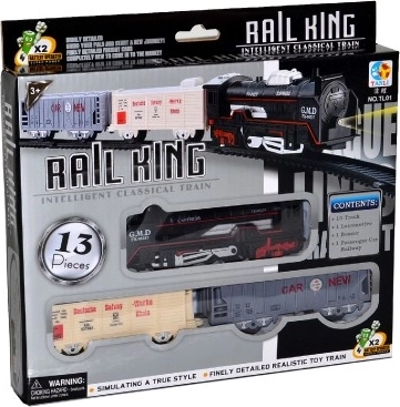 Uživajte u atmosferi klasične željeznice s ovim stilskim vlakom na baterije. Set sadrži lokomotivu, dva vagona i tračnice koje stvaraju krug promjera 67 cm (duljina pruge 210 cm). Vlak je opremljen svjetlosnim i zvučnim efektima za još realističniji doživljaj.