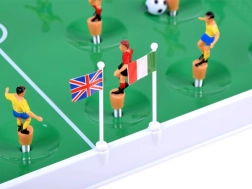 Pažljivo izrađene figurice i stabilno igralište savršeni su za dvoboje u dvoje i s više igrača. Zahvaljujući priloženim zastavicama i naljepnicama postavit ćete vlastite timove, a rezultate bilježite na ploči za rezultat.