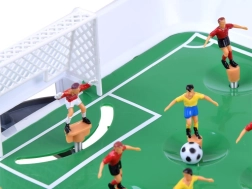 Organizirajte vlastito Svjetsko prvenstvo izravno kod kuće. Veliki set stolnog nogometa lako se priprema za igru, a zahvaljujući aktivnom vrataru nudi napete dvoboje do posljednje sekunde. Igrače rasporedite prema svojoj taktici, ubacite lopticu i može početi veliki meč – neka pobijedi najbolji!
