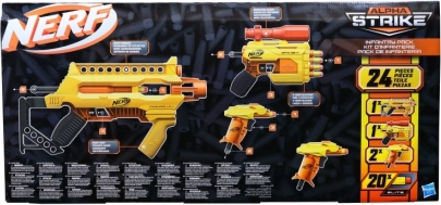 Otkrijte uzbuđenje igre s pištoljima Nerf Alpha Strike. Ovaj set sadrži 4 pištolja i 20 službenih Nerf Elite strelica, idealan za avanturističke bitke s prijateljima i obitelji.